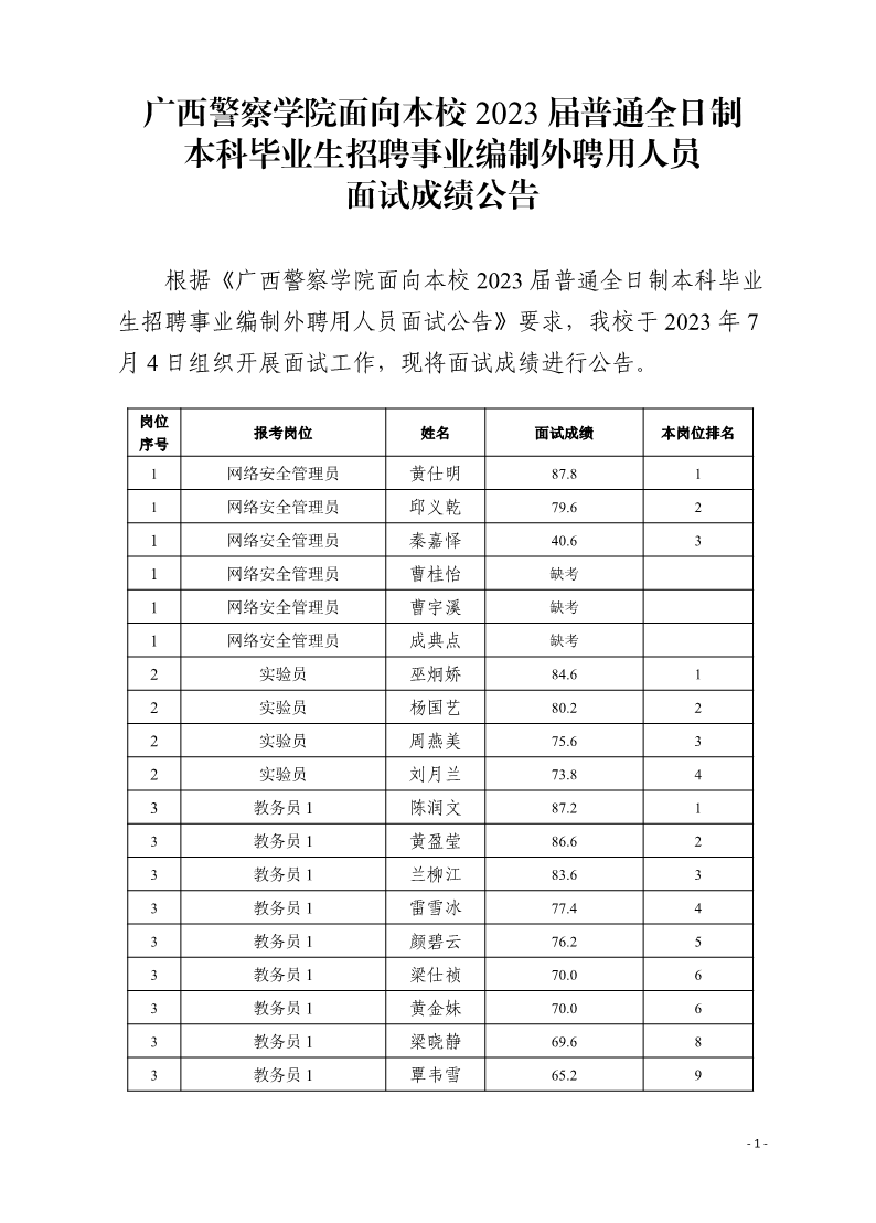 bat365中文官方网站面向本校2023届普通全日制本科毕业生招聘事业编制外聘用人员面试成绩公告 来源: 发布时间:2023-07-05 11:30:48 浏览次数: 次 【字体:小 大】 分享到: 【打印正文】
