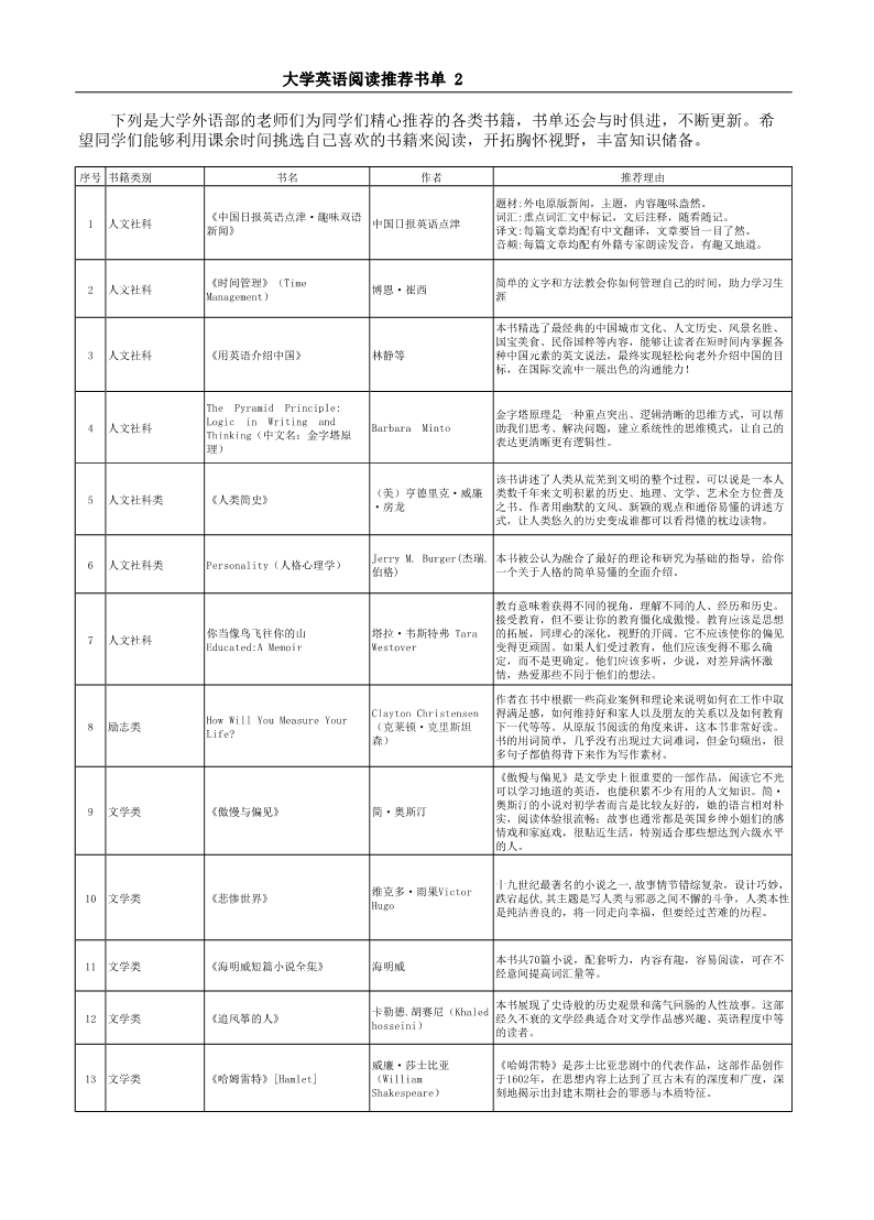 大学英语阅读推荐书单 2