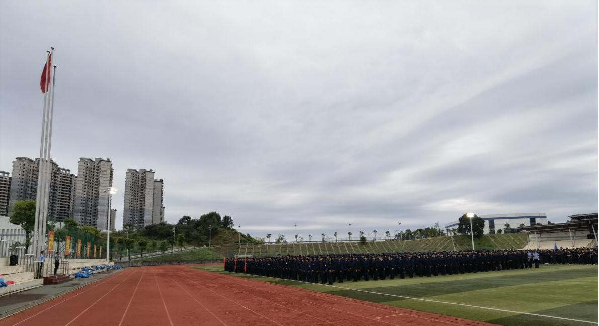 仪式上,国旗护卫队迈着铿锵有力的步伐护送五星红旗缓缓升起,全场师生肃立行注目礼,齐唱国歌,表达了对伟大祖国的热爱与敬仰。