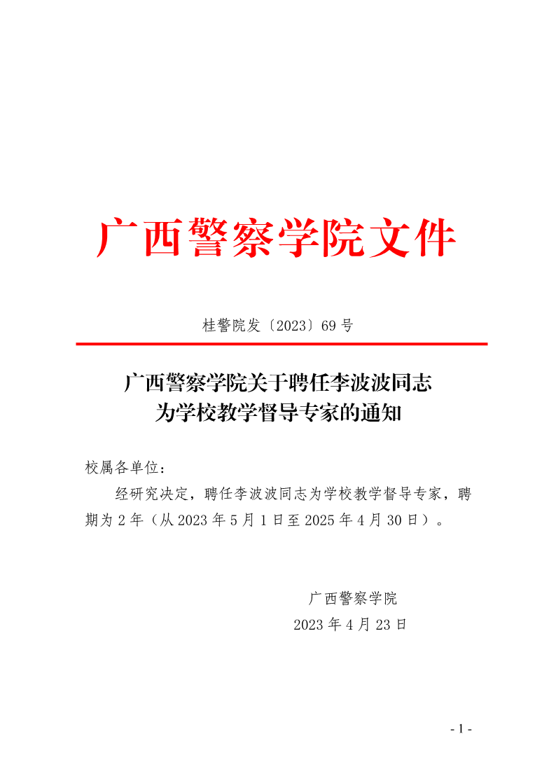 bat365中文官方网站关于聘任李波波同志为学校教学督导专家的通知