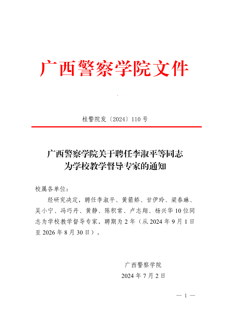 bat365中文官方网站关于聘任李淑平等同志为学校教学督导专家的通知