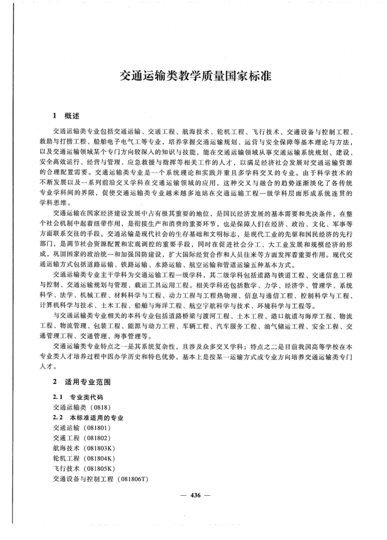 交通运输类教学质量国家标准