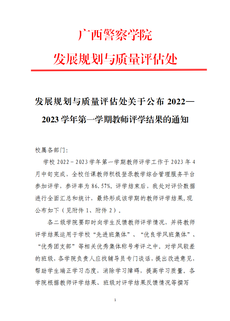 发展规划与质量评估处关于公布2022—2023学年第一学期教师评学结果的通知
