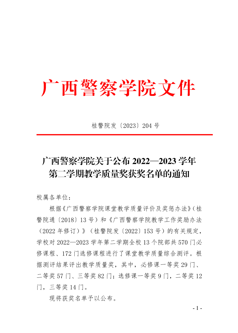 bat365中文官方网站关于公布2022-2023学年第二学期教学质量奖获奖名单的通知