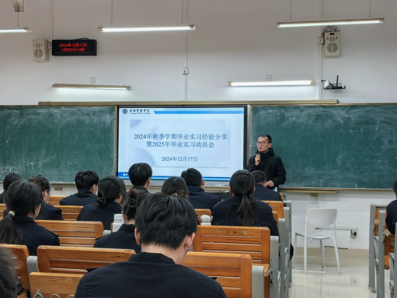 为进一步梳理与总结2024年秋学期毕业实习的宝贵经验,同时为2025年春学期毕业实习生提供有力的实习就业指导和动员,我院于12月17日下午召开了2024年秋学期毕业实习经验分享暨2025年春学期毕业实习动员大会。会议依四个专业分成四个会场,各会场由覃丹、陈先玥、黄德优、覃晓雨、覃龙军等各区队辅导员主持,谭玉龙、刘泓霖、吴志送、刁爱华、李春妮等各专业负责人参加会议。