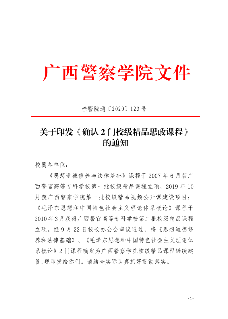 关于印发《确认2门校级精品思政课程》的通知