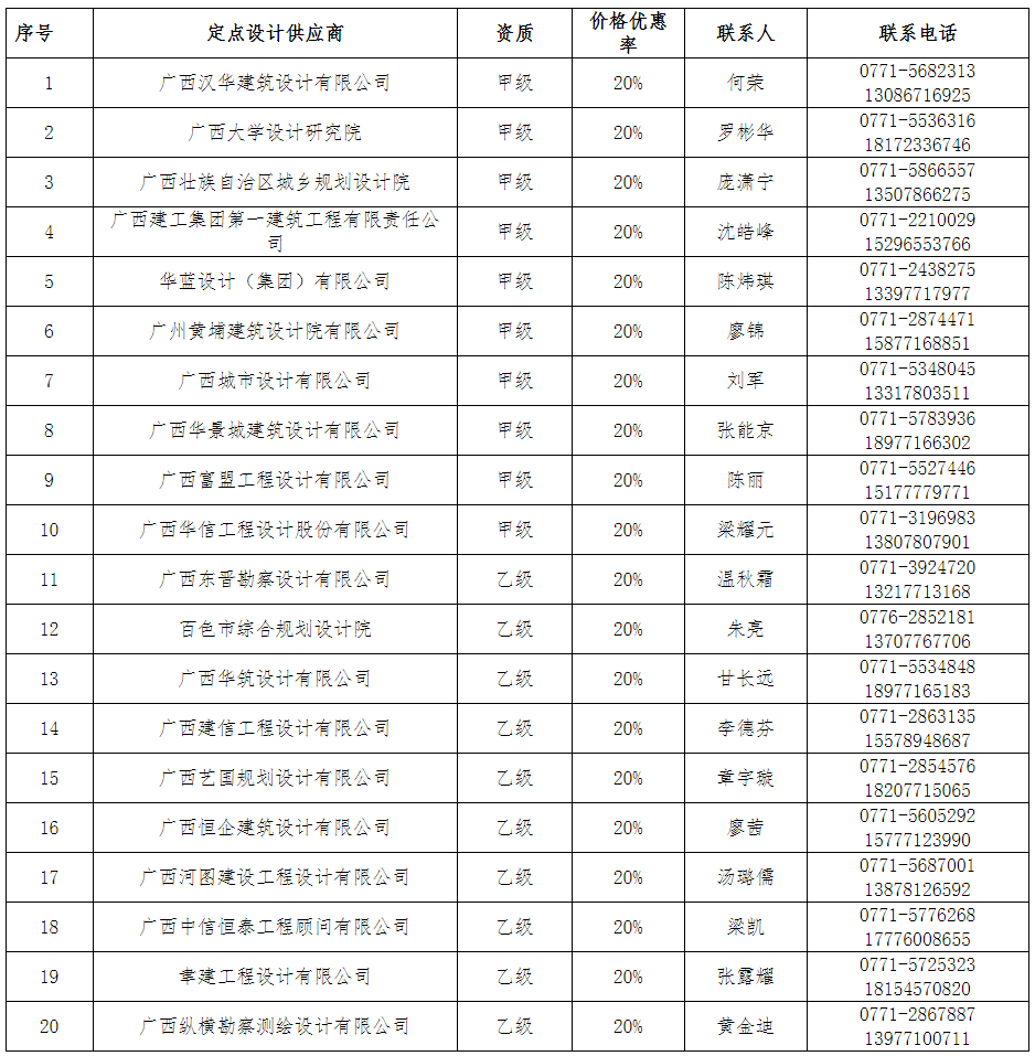 本期建设工程设计服务定点采购供应商及其价格优惠率的有效期限为二年,自发文之日起至2020年12月31日止。