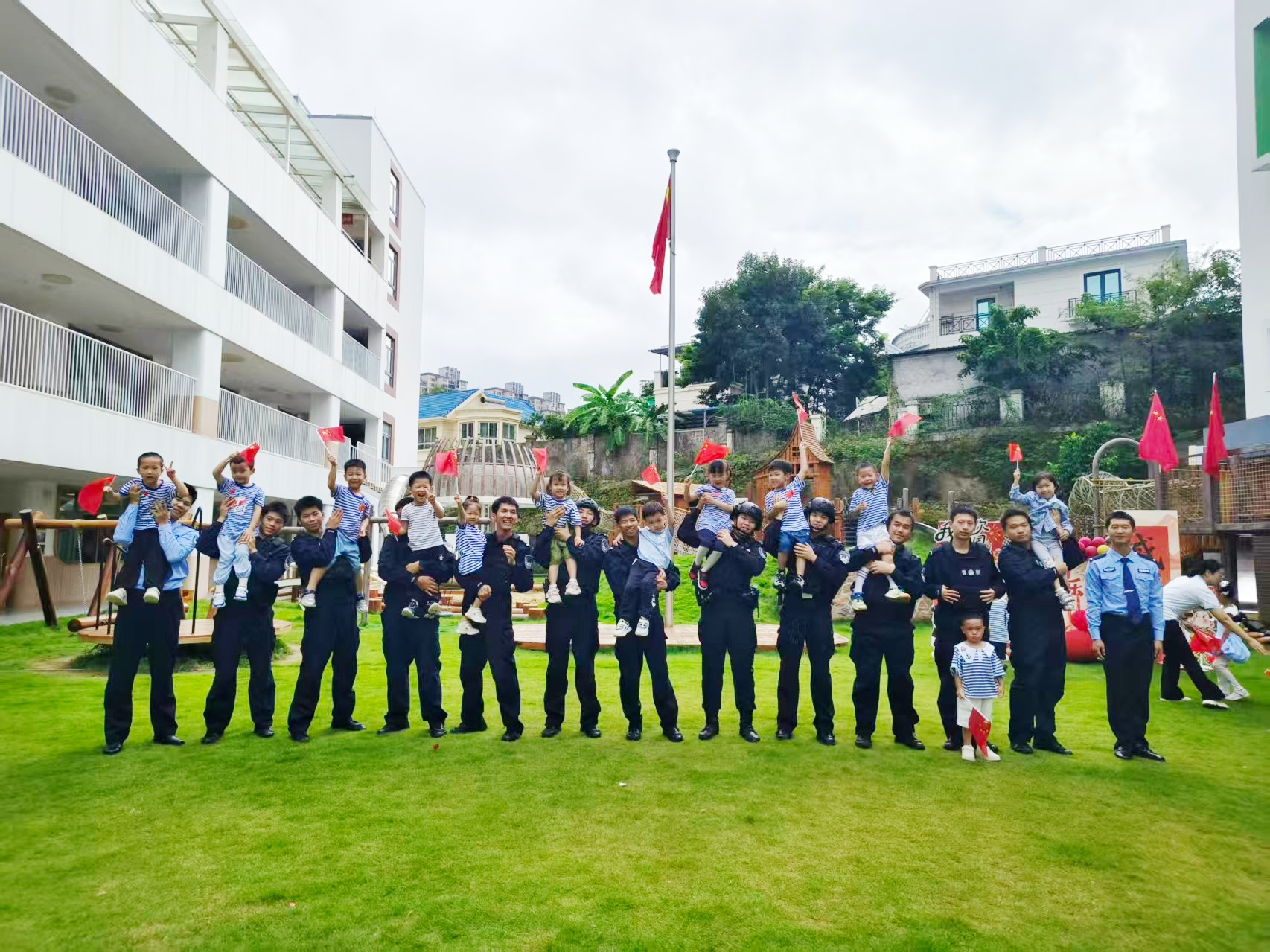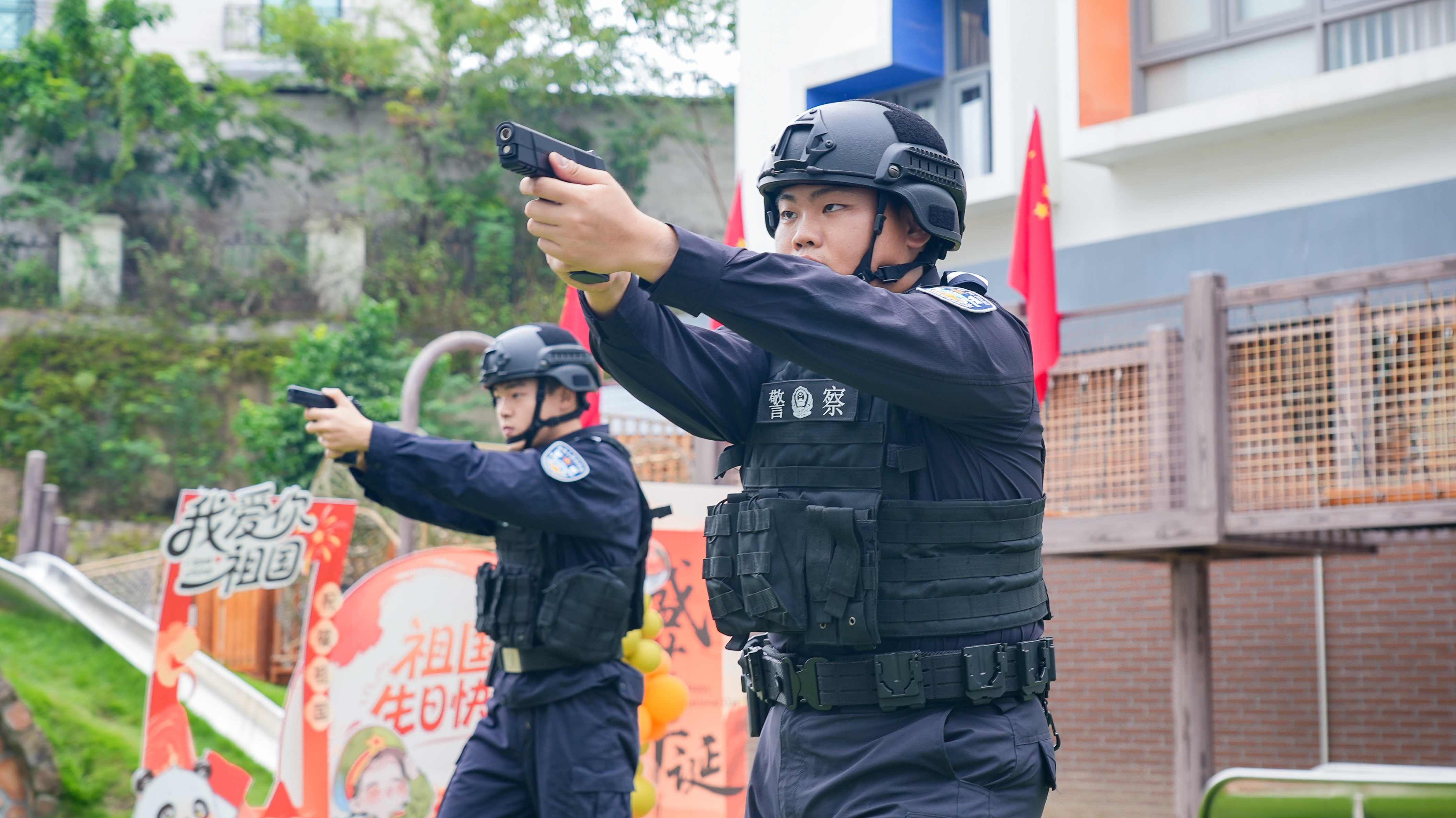 金秋送爽,丹桂飘香。9月30日,在南宁市美吉瑞幼儿园的诚挚邀请下,警务实战学院的学员们英姿飒爽地走进校园,为全体师生带来了一场庄严神圣的升旗仪式和一场精彩绝伦的警务技能战术表演。