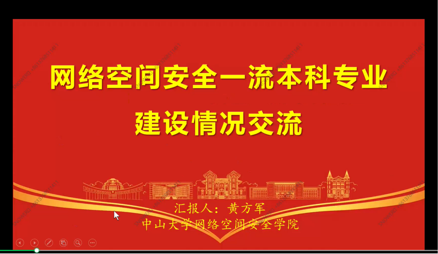 黄方军教授以“网络空间安全一流本科专业建设情况交流”为主题开展讲座。首先介绍了中山大学网络空间安全学院概况,然后从人才培养、科研情况、一流校园环境等三个方面进行了经验交流。