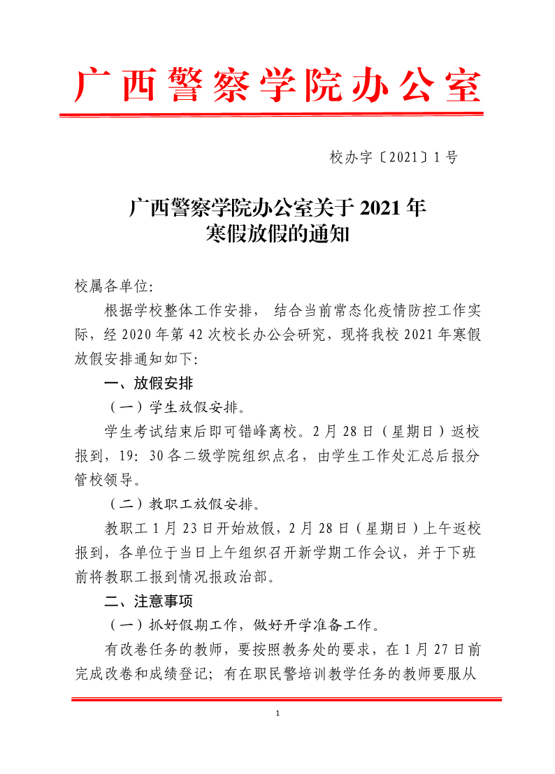 关于2021年寒假放假的通知