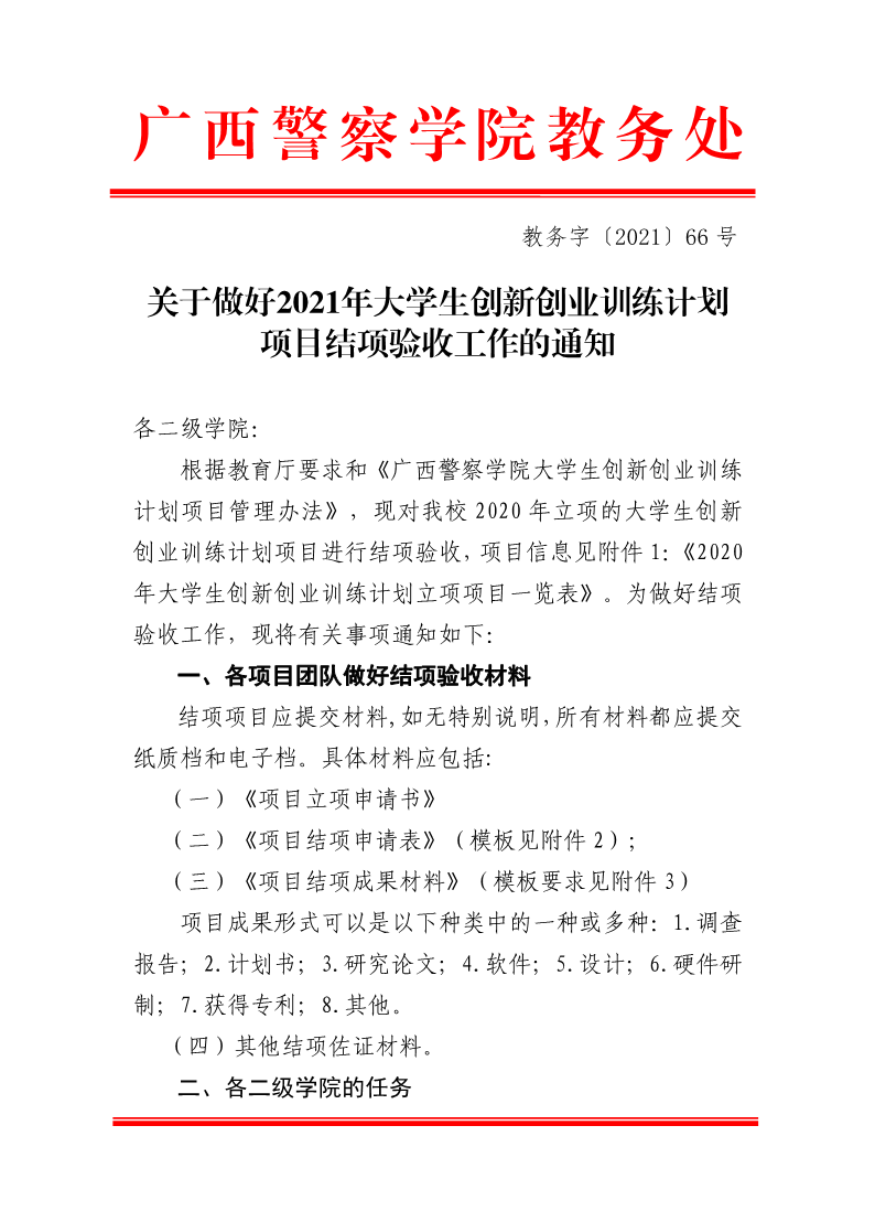 关于做好2021年大学生创新创业训练计划项目结项验收工作的通知