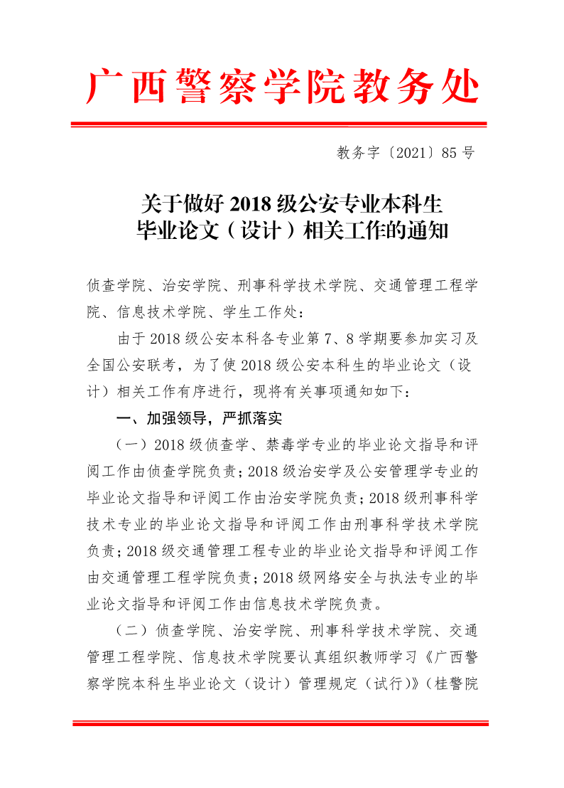 关于做好2018级公安专业本科生毕业论文(设计)相关工作的通知