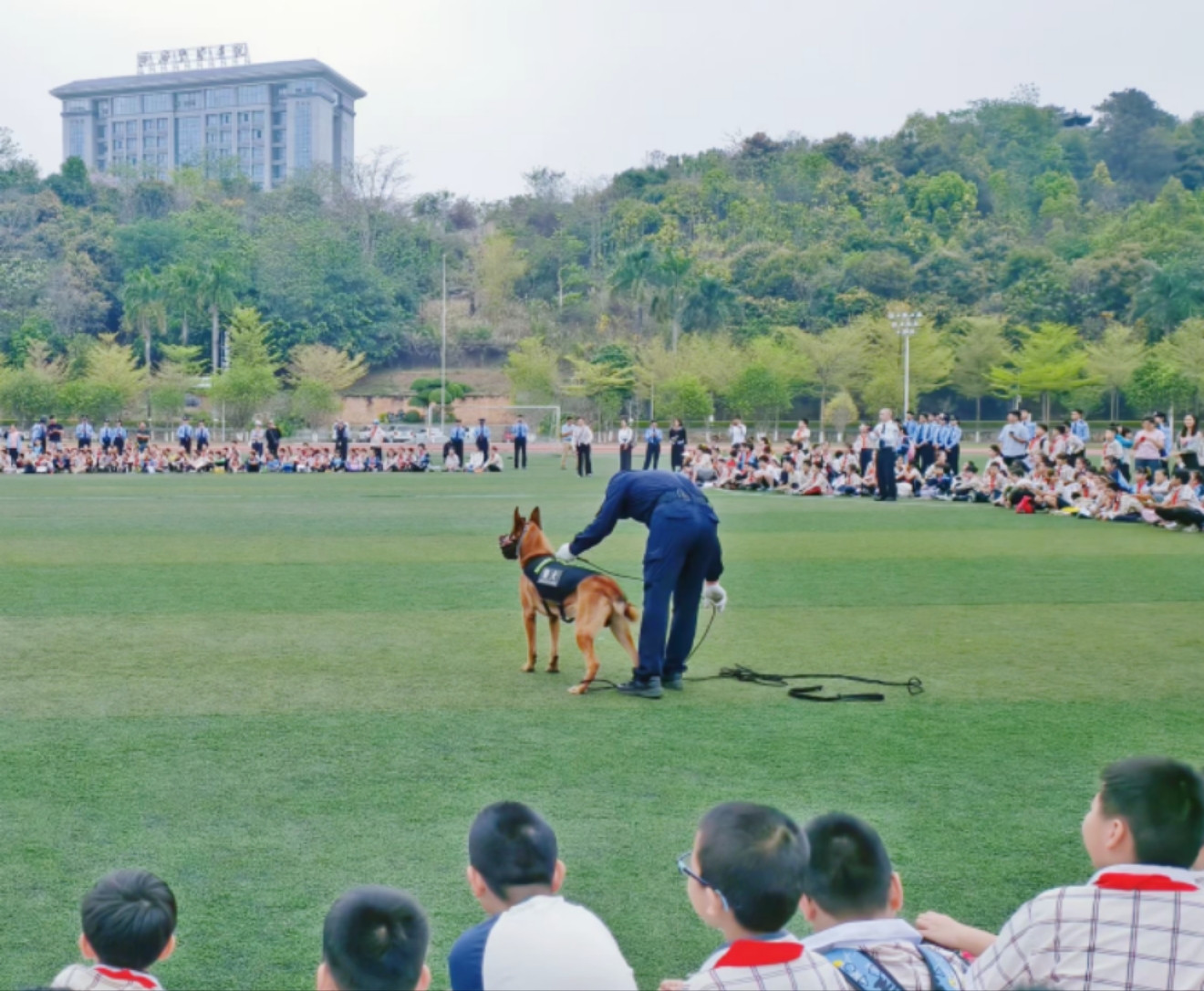 图七    学生与警犬互动