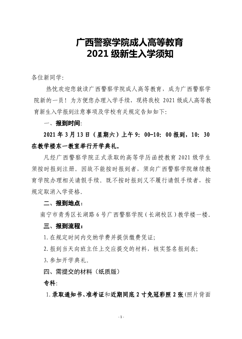 bat365中文官方网站成人高等教育2021级新生入学须知