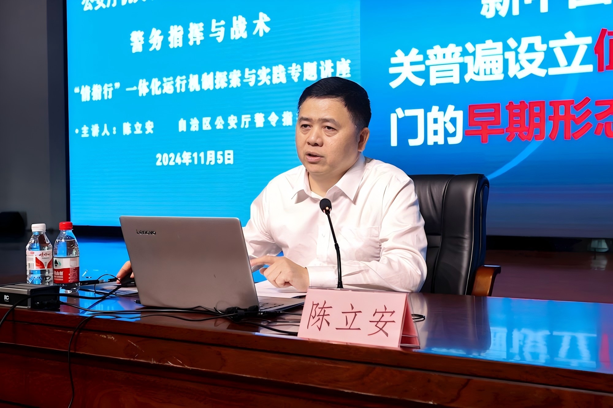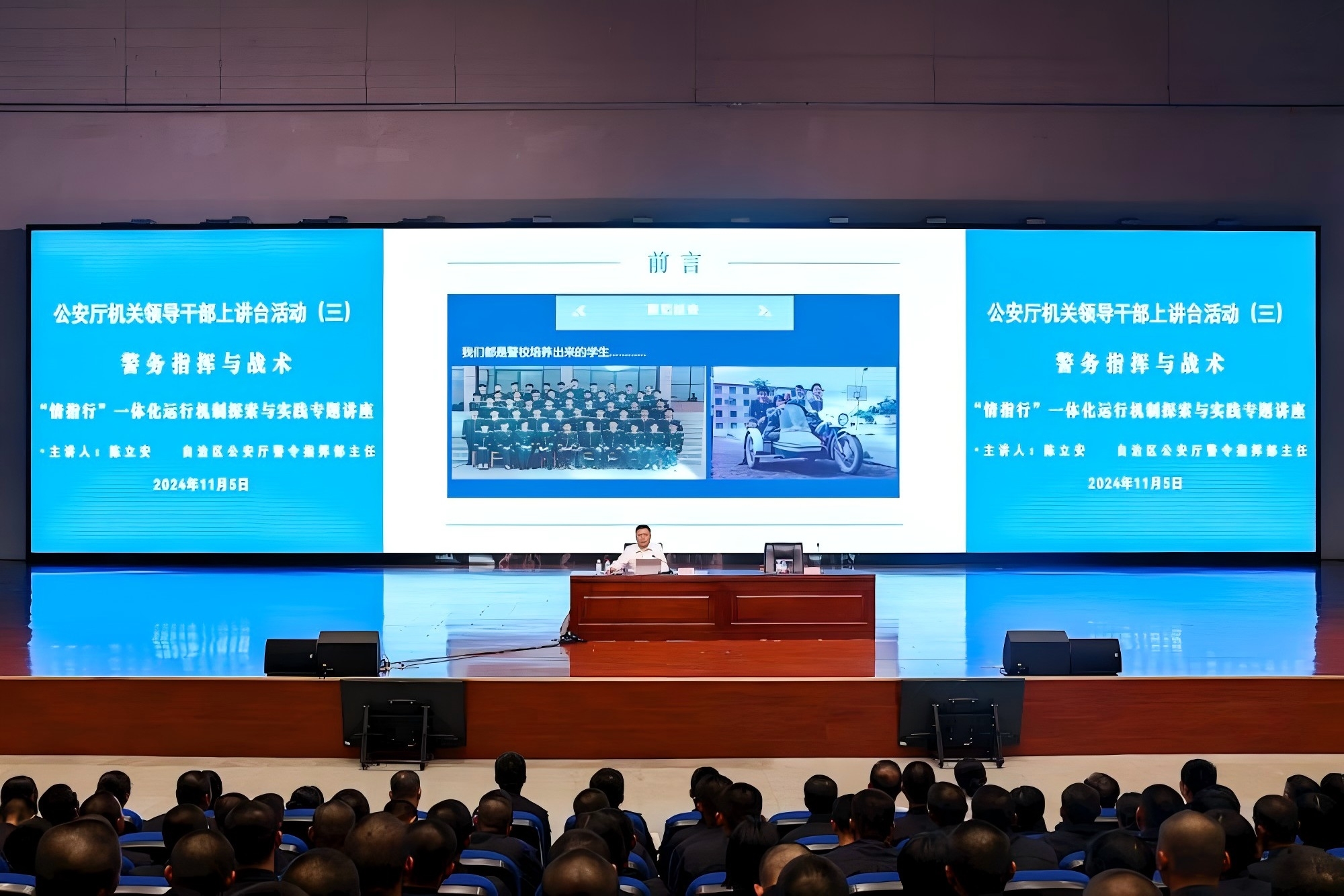 11月6日,自治区公安厅机关领导干部上讲台系列活动第三期在仙葫校区学术报告中心开讲,自治区公安厅警令指挥部主任陈立安受邀到bat365开展警务指挥专题讲座。