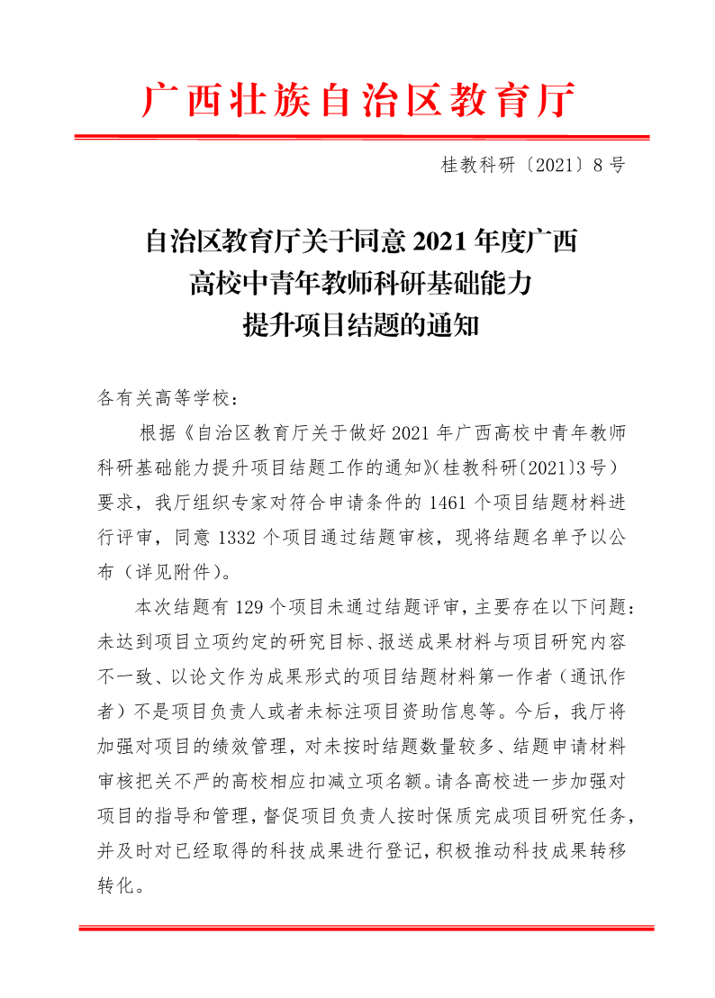 自治区教育厅关于同意2021年度广西高校中青年教师科研基础能力提升项目结题的通知 来源: 发布时间:2021-06-18 09:56:07 浏览次数: 次 【字体:小 大】 智能标签: 教育厅 同意 年度 项目结题 分享到: 【打印正文】 相关内容