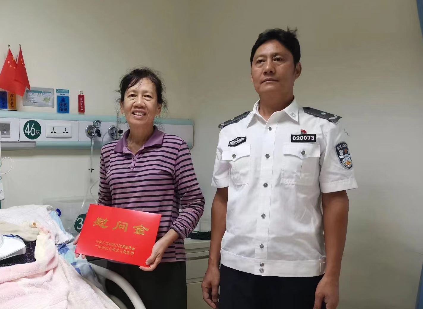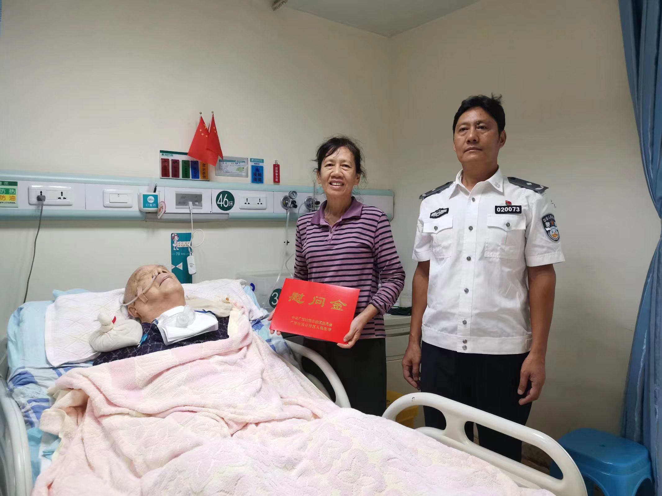离退休工作处国庆节前走访慰问离休干部 来源: 发布时间:2024-09-30 10:17:50 浏览次数: 次 【字体:小 大】 在中华人民共和国成立75周年来临之际,为落实党中央、自治区党委和学校党委对离休干部的关怀关爱,9月27日上午,离退休工作处党总支书记阮积嵩到江滨医院看望慰问离休干部张成华,送上慰问金,并向张老及家属致以节日问候和美好祝愿。 分享到: 【打印正文】