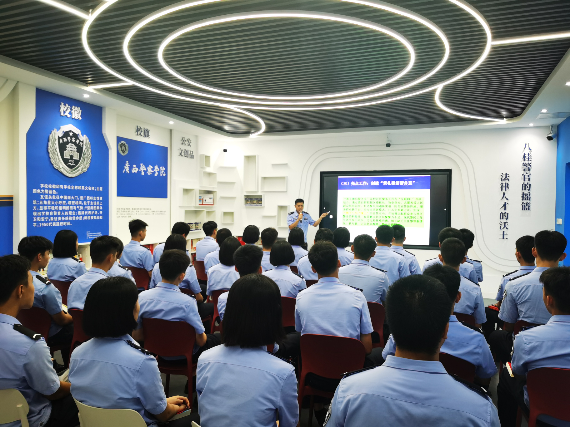 我院邀请全国二级公安英模黄礼同志为公安专业学生授课 来源: 发布时间:2023-09-08 15:05:01 浏览次数: 次 【字体:小 大】 根据学校“公安英模教育”选修课课程安排,9月6日晚,学院邀请全国二级公安英模、全国优秀人民警察、南宁市公安局黄礼同志,在仙葫校区bat365中文官方网站公安文化教育基地为2022级公安专业选修课程学生授课。黄礼以“不忘初心,勇挑重担,争做时代新人”为主题,结合自身从警之路和工作感悟与学生展开了分享和交流,让学生对公安基层工作有了更加深刻的了解和认知。全体学生一致表示要向公安英模看齐,不忘初心、牢记使命,争做新时代合格预备警察。 编辑:黄雷文 审核:潘彦霖 签发:覃海逢 分享到: 【打印正文】