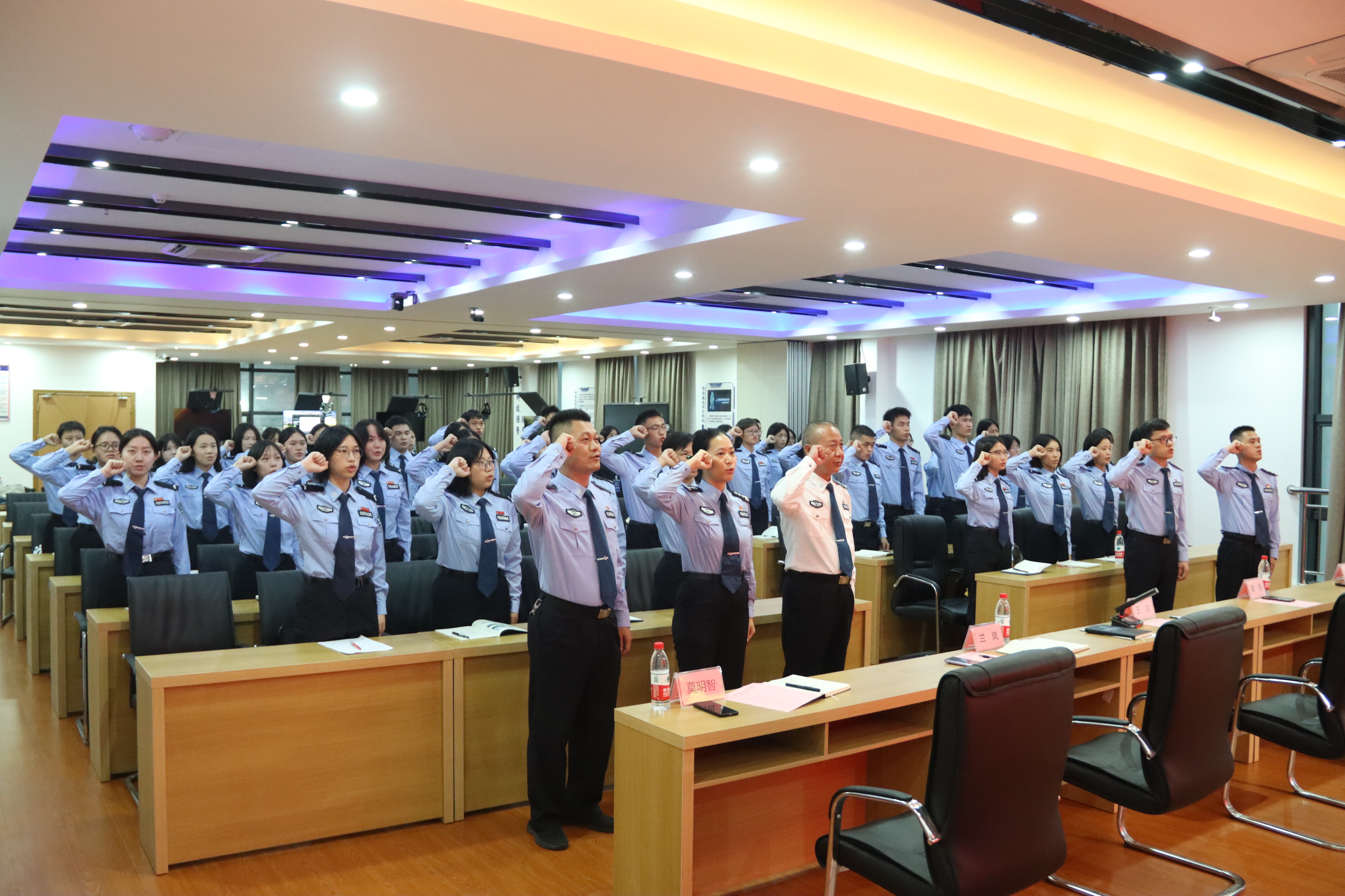 党总支书记王洪带领同学们一起重温了入团宣誓。铿锵的誓词,激励着同学们拼搏进取,努力成为堪当大任的新时代青年。开班仪式在雄壮激昂的中国人民警察警歌中落下帷幕。