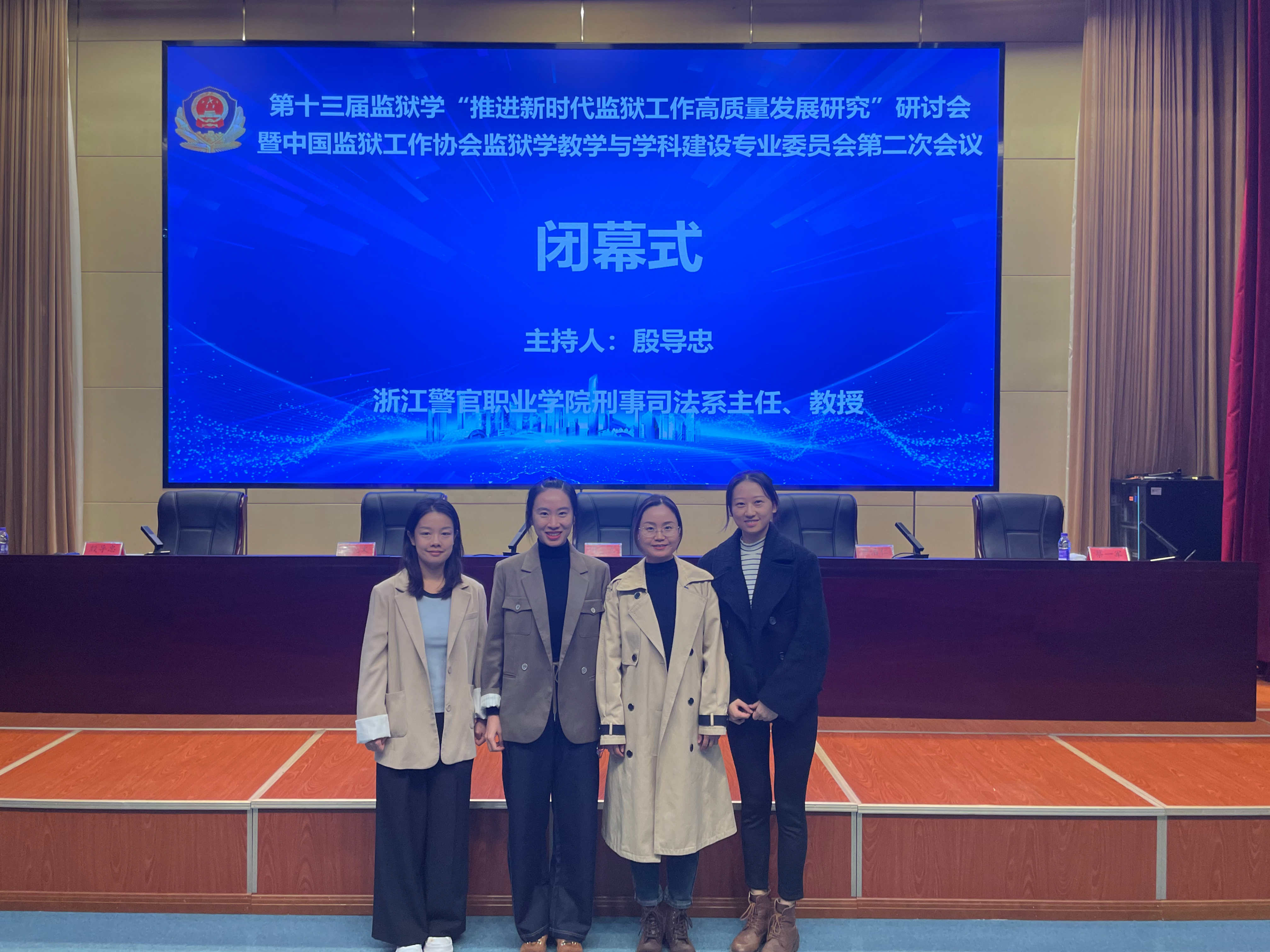 2024年11月22日,第十三届监狱学“推进新时代监狱工作高质量发展研究”研讨会暨第二届中国监狱工作协会监狱学教学与学科建设专业委员会会议在杭州召开。此次年会由上海政法学院、中国监狱工作协会监狱学教学与学科建设专业委员会主办,浙江警官职业学院承办。来自国内监狱学领域的学者及实务界专家共计100余人参加会议。司法应用学院教师李海华、王斯彤、李卓颖、周紫琪受邀参加本次年会。