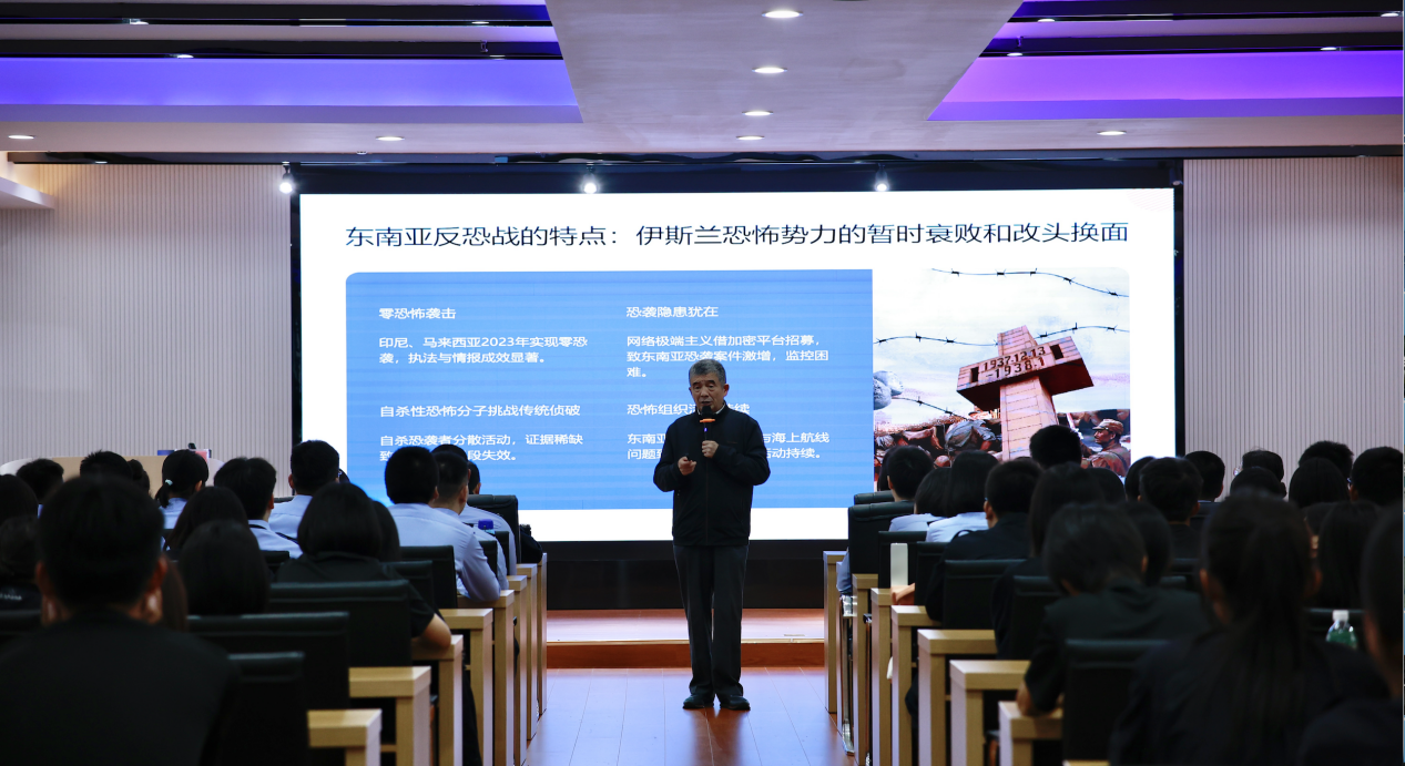 讲座中,周戎研究员结合两次自杀式恐怖袭击的具体案例,深入解析了反恐斗争的严峻性和复杂性,并系统阐述了巴基斯坦的反恐形势及其应对策略。此外,周戎研究员还详细剖析了东南亚地区在反恐方面所采取的一系列举措,包括加强情报收集与共享机制、开展跨国的联合军事行动、提升国内安全防范能力等方面。通过这些实践案例,展示了不同国家在面对恐怖主义威胁时,依据自身的国情和地缘政治环境,所制定的特色反恐策略以及取得的成效与面临的挑战,为师生们提供了丰富且具有现实意义的参考素材。