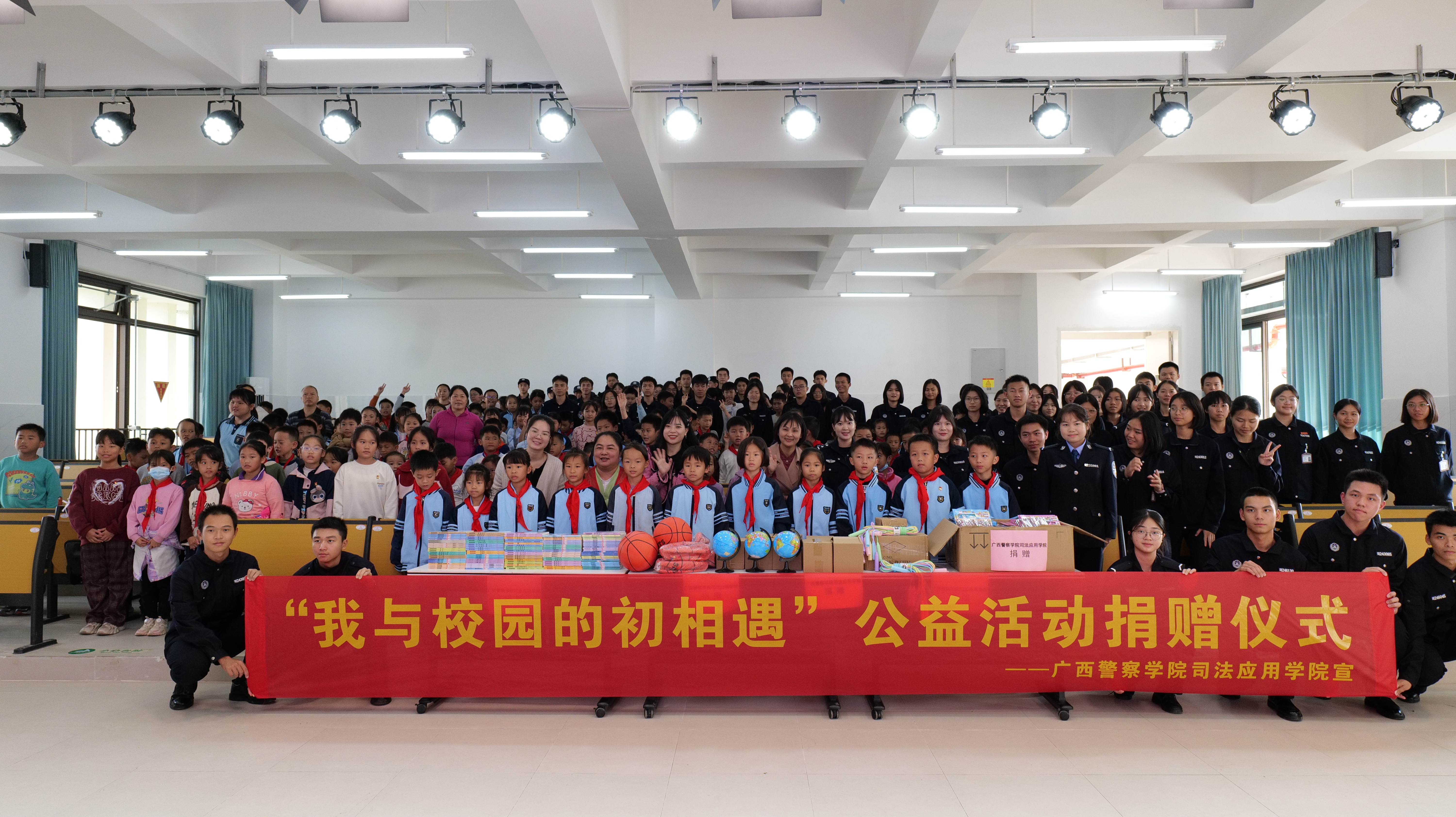 随后捐赠仪式上,司法应用学院师生为青少年送上书籍、文具、体育用品等教学与体育活动用品。