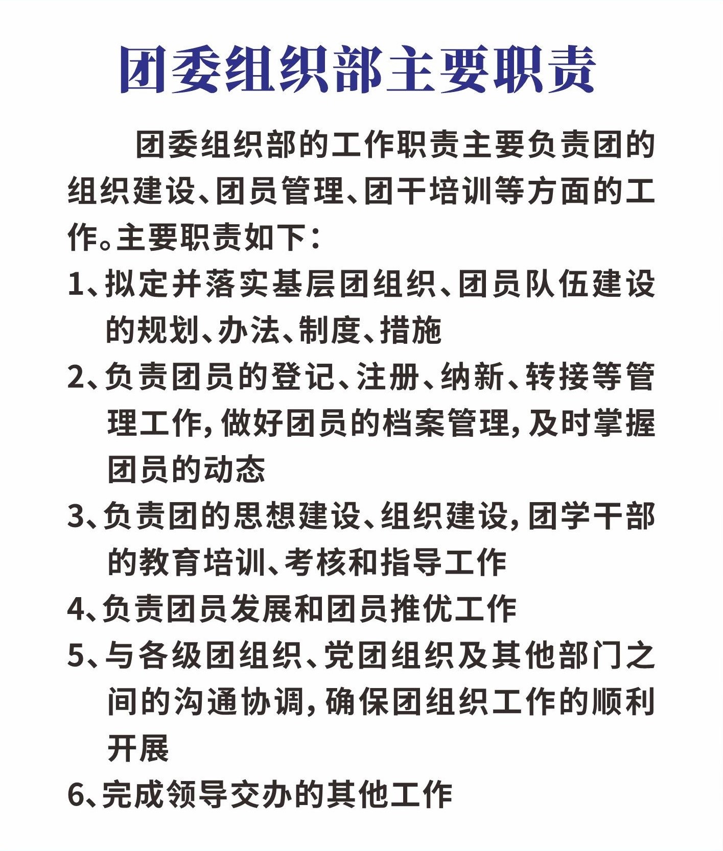 团委组织部主要职责