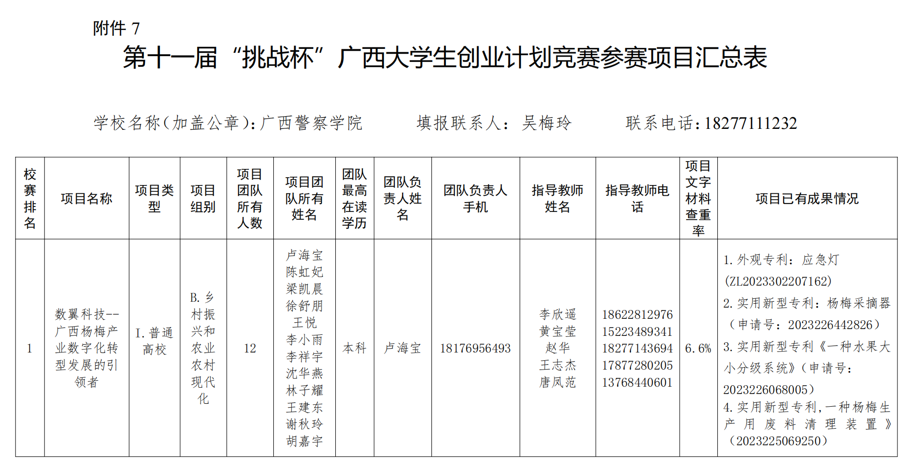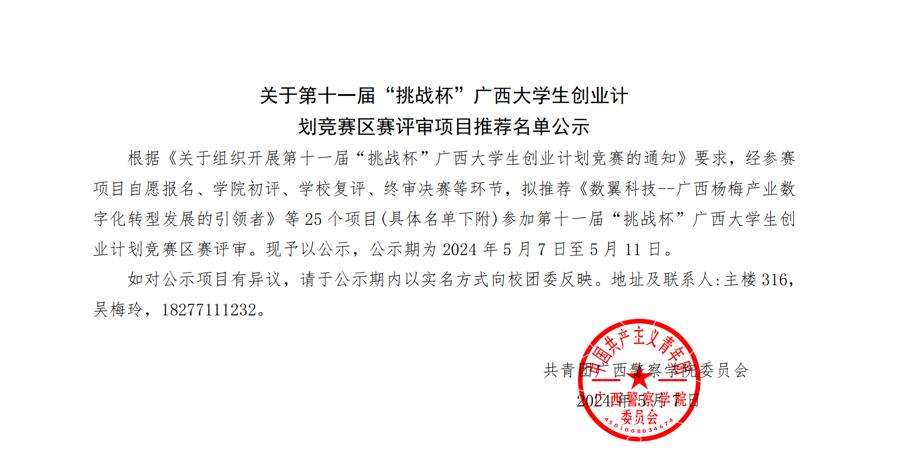关于第十一届“挑战杯”广西大学生创业计 划竞赛区赛评审项目推荐名单公示