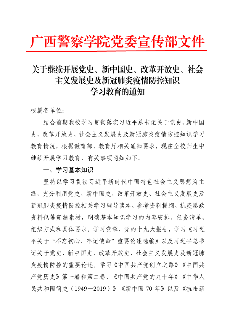 关于开展党史、新中国史、改革开放史、社会主义发展史学习教育及新冠肺炎疫情防控知识学习教育的通知 来源: 发布时间:2020-07-25 12:11:20 浏览次数: 次 【字体:小 大】 分享到: 【打印正文】