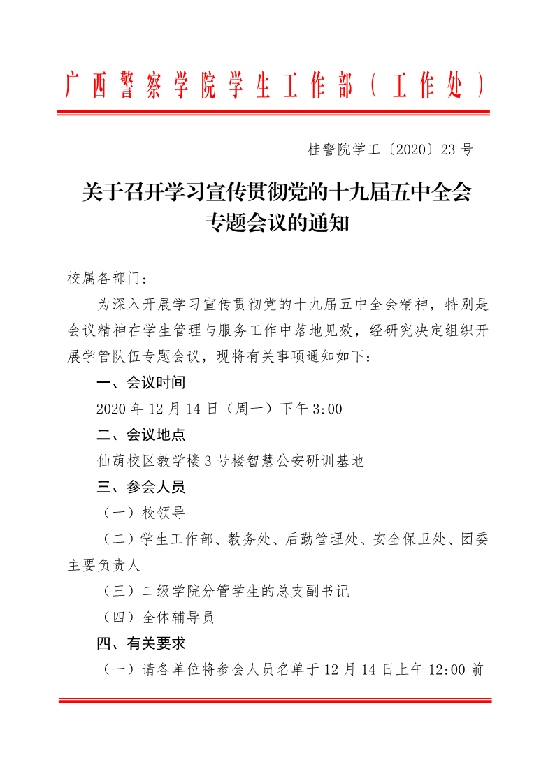 关于召开学习宣传贯彻党的十九届五中全会专题会议的通知