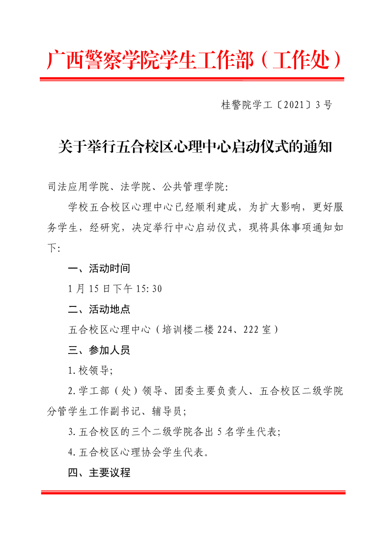 关于举行五合校区心理中心启动仪式的通知