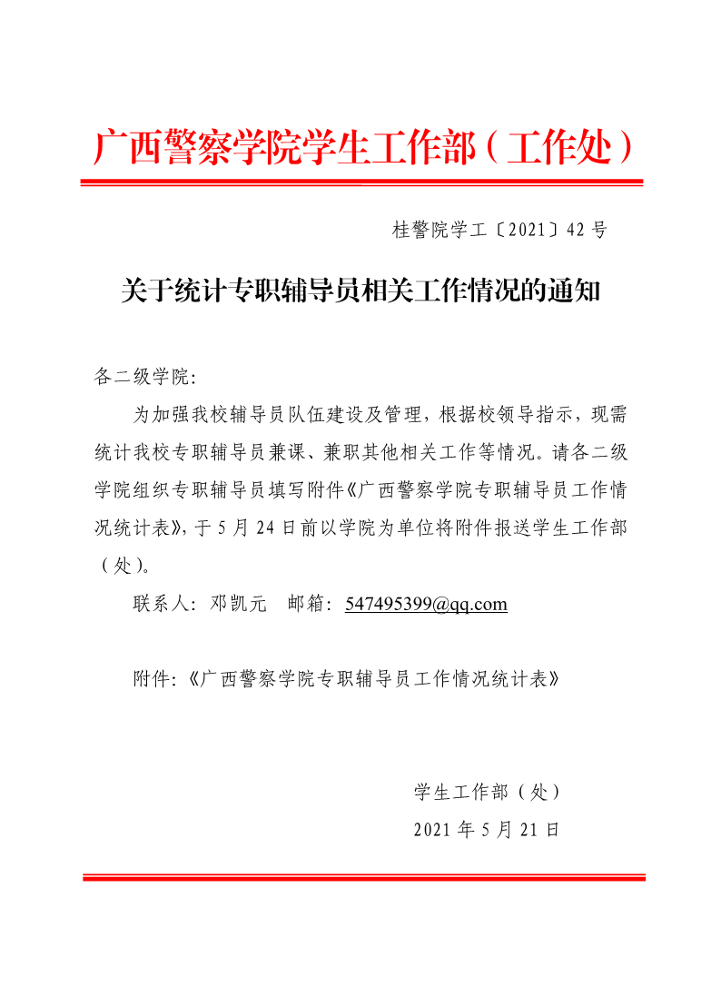 关于统计专职辅导员相关工作情况的通知 来源: 发布时间:2021-05-21 15:10:07 浏览次数: 次 【字体:小 大】 附件:bat365中文官方网站专职辅导员工作情况统计表.pdf 分享到: 【打印正文】