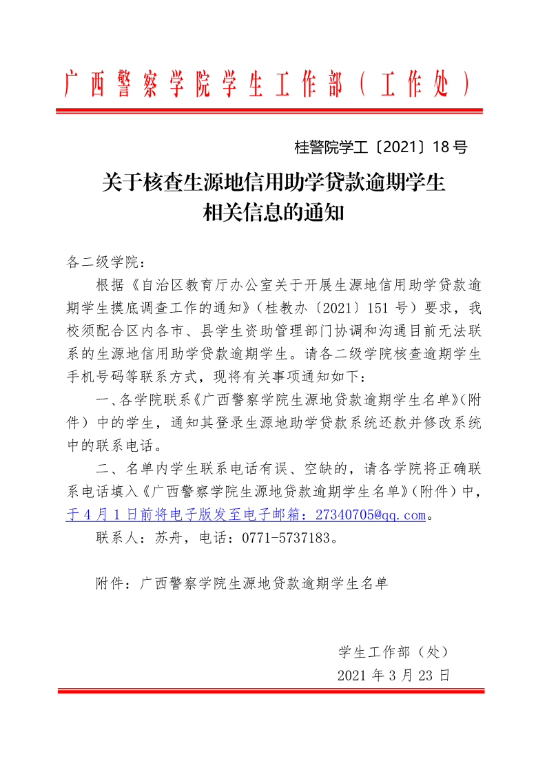关于核查生源地信用助学贷款逾期学生相关信息的通知