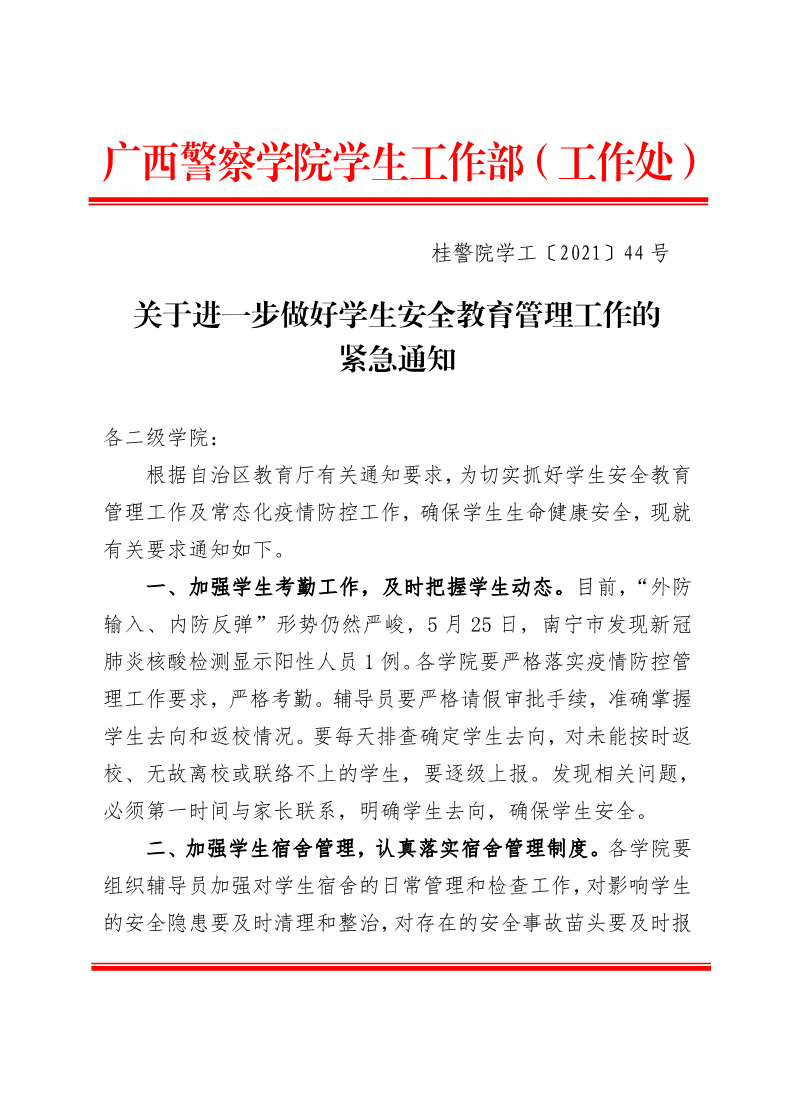 关于进一步做好学生安全教育管理工作的 紧急通知