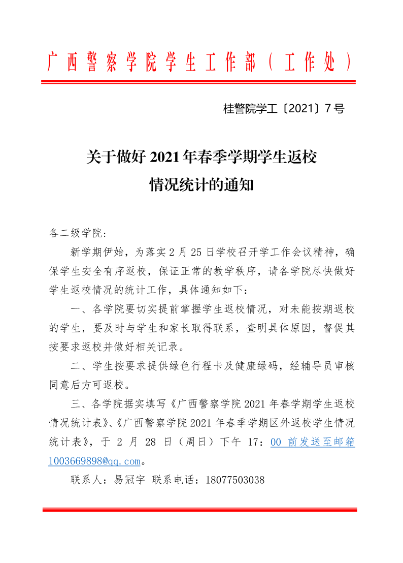 关于做好2021年春学期学生返校情况统计的通知