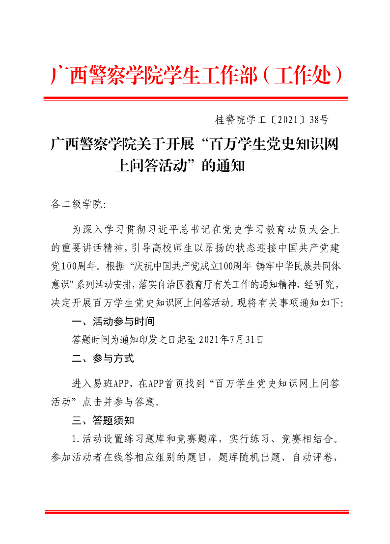 bat365中文官方网站开展百万学生党史知识网上问答活动的通知