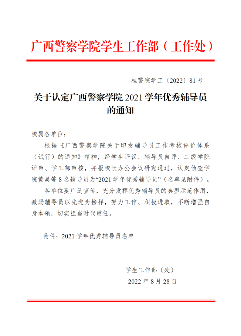 关于认定bat365中文官方网站2021学年优秀辅导员的通知