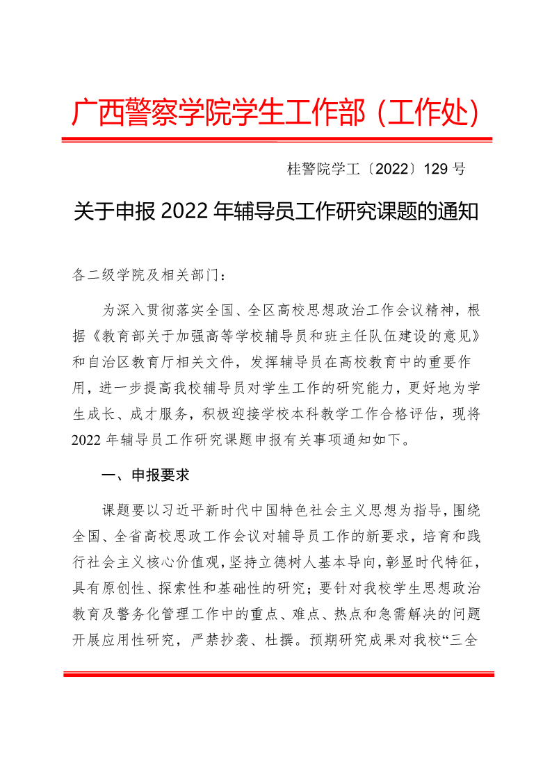 关于申报2022年辅导员工作研究课题的通知 来源: 发布时间:2022-12-19 11:00:23 浏览次数: 次 【字体:小 大】 附件1:bat365中文官方网站2022年度辅导员工作研究课题申报书.pdf 分享到: 【打印正文】