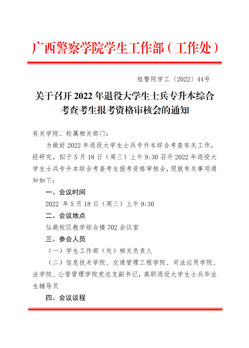 关于召开2022年退役大学生士兵专升本综合考查考生报考资格审核会的通知