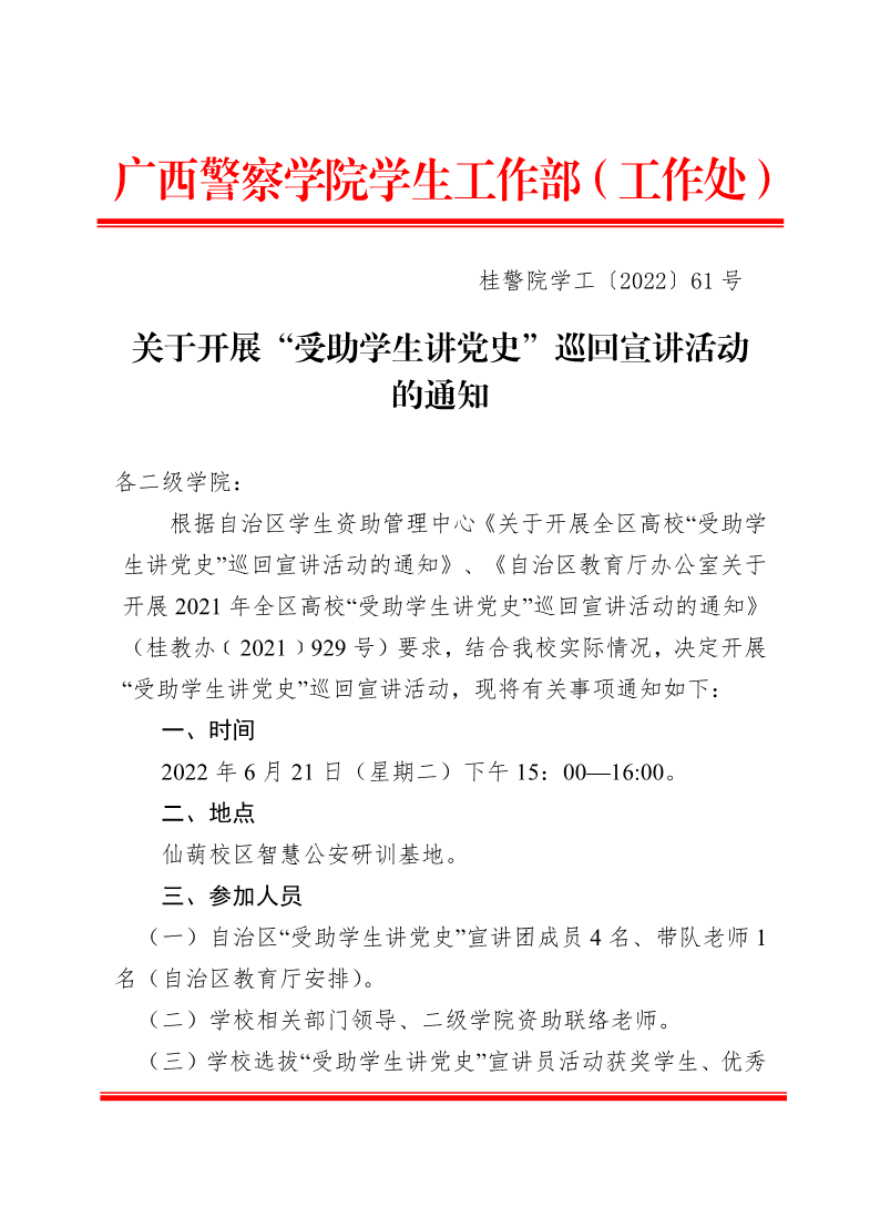 关于开展“受助学生讲党史”巡回宣讲活动的通知