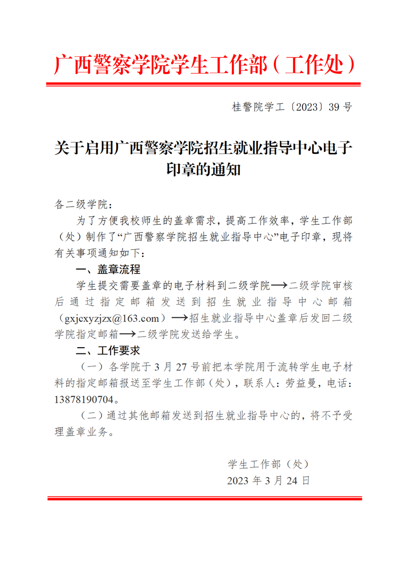 关于启用bat365中文官方网站招生就业指导中心电子印章的通知