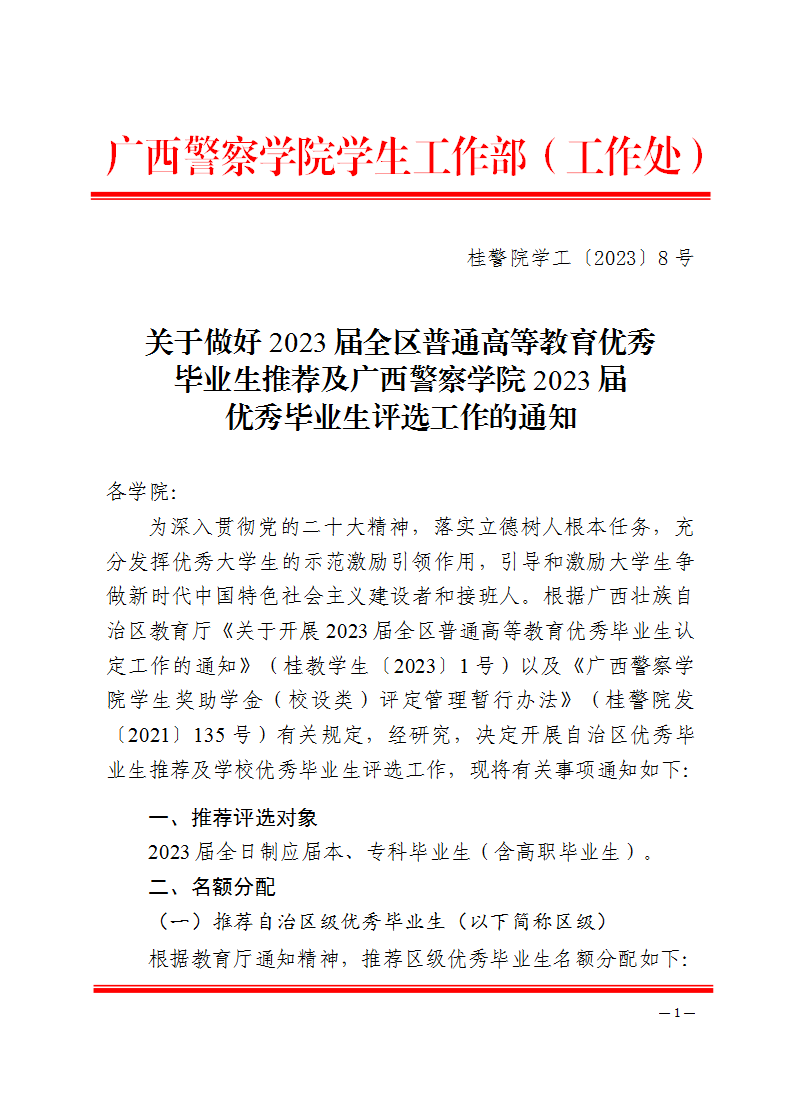 关于做好全区2023届普通高等教育优秀毕业生推荐及bat365中文官方网站2023届优秀毕业生评选工作的通知 来源: 发布时间:2023-02-06 09:00:34 浏览次数: 次 【字体:小 大】 附件1:2023届区级优秀本科毕业生推荐名单表.pdf附件2:2023届区级优秀专科毕业生推荐名单表.pdf附件3:2023届广西普通高等教育优秀毕业生登记表.pdf附件4:2023届校级优秀本科毕业生推荐名单表.pdf附件5:2023届校级优秀专科毕业生推荐名单表.pdf附件6:bat365中文官方网站2023届优秀毕业生登记表.pdf 分享到: 【打印正文】