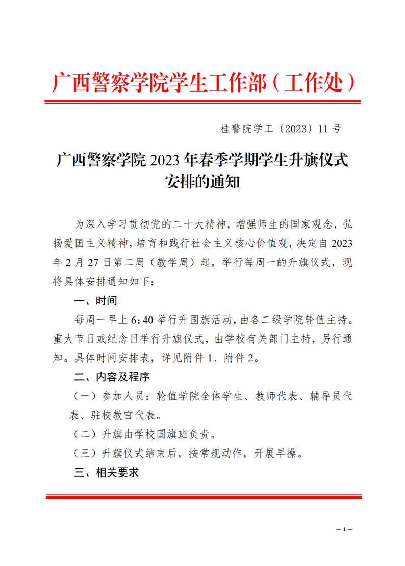 bat365中文官方网站2023年春季学期学生升旗仪式安排的通知