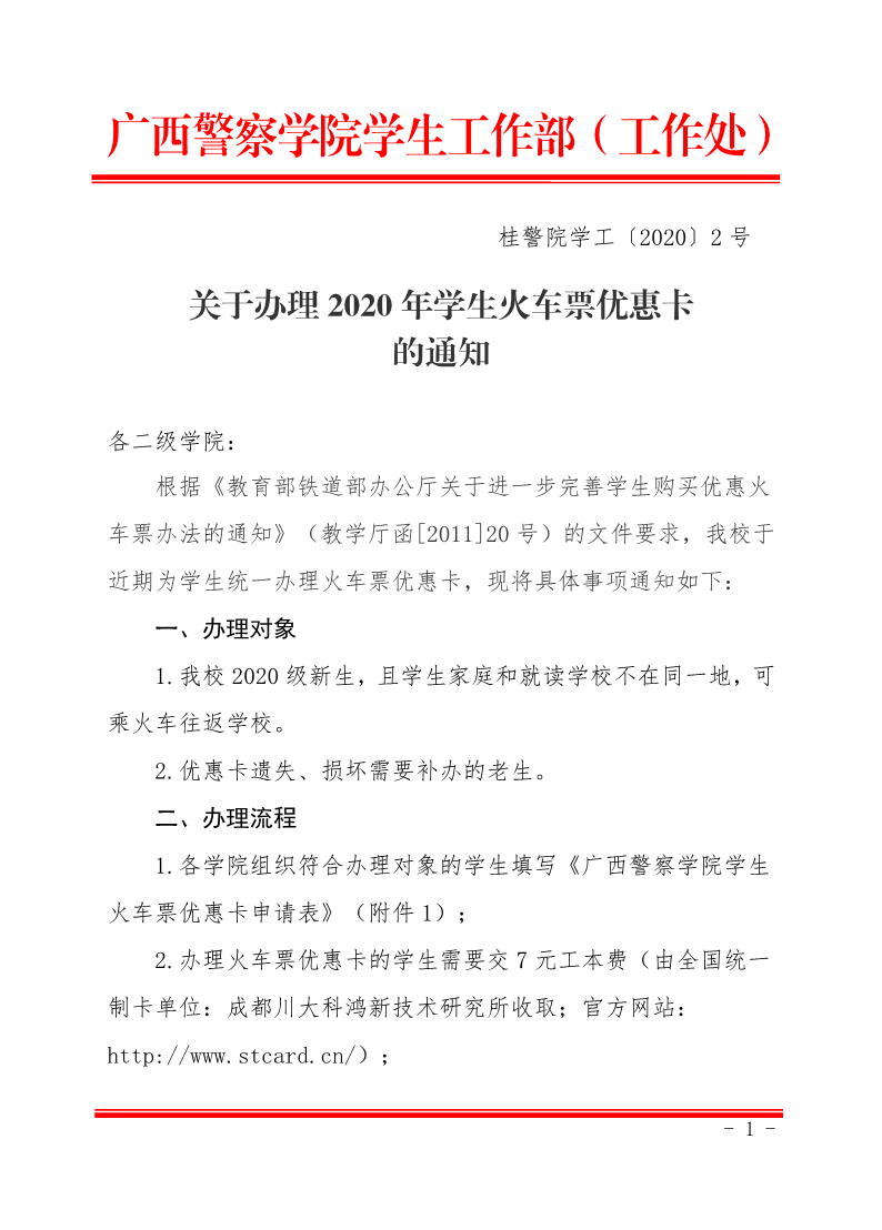 关于统一办理2020年学生火车票优惠卡的通知