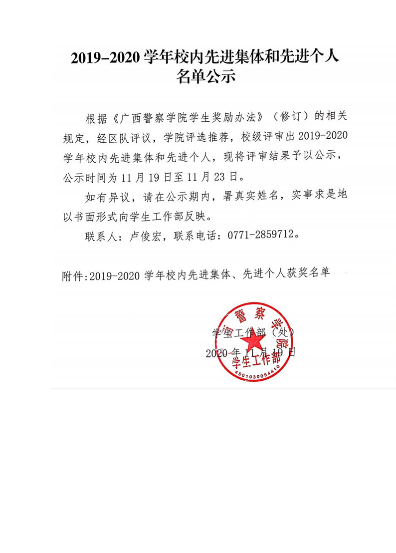 2019-2020学年校内先进集体和先进个人名单公示
