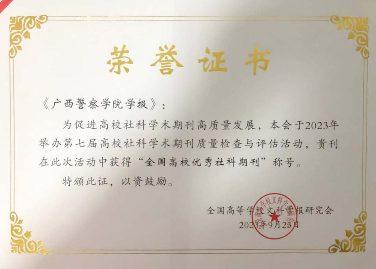 《bat365中文官方网站学报》创刊于1988年,常设有法学、公安学、禁毒研究、反恐研究、边境治理研究、网络违法与治理研究、公共安全与社会治理、犯罪学与犯罪治理、公安教育等栏目。多年来,学报始终坚持正确的办刊方向,坚持“学术第一、质量为王”原则,期刊的内容质量、影响因子和社会影响力显著提升,复合影响因子由2015年的0.191 提升至2021年的0.711。曾先后获得“广西高校优秀学报”“广西高校精品学报”“广西优秀期刊”等荣誉。2022-2023年,学报3篇文章被中国人民大学《复印报刊资料▪公安学》全文转载,1篇被《高等学校文科学术文摘》部分转载,实现了高水平学术平台转载的历史突破。