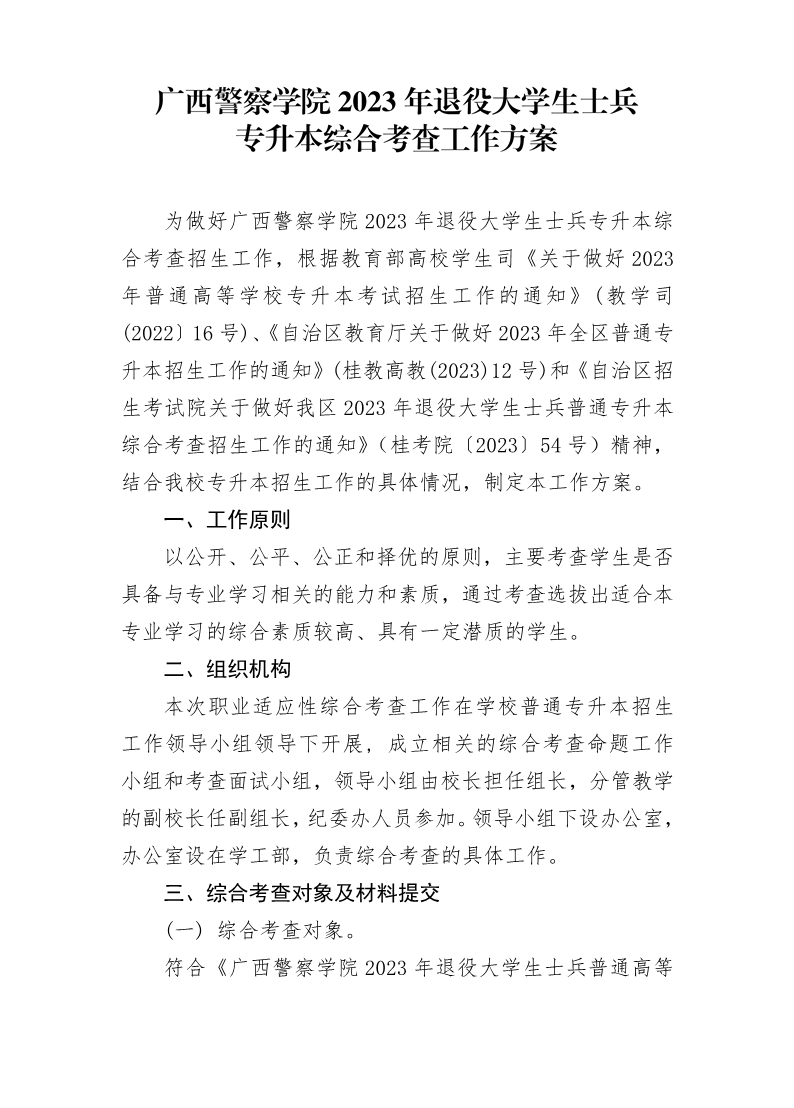 bat365中文官方网站2023年退役大学生士兵专升本综合考查工作方案