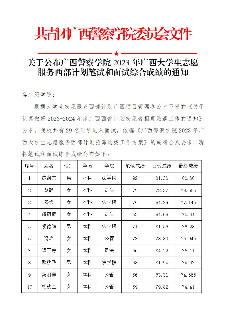 关于公布bat365中文官方网站2023年广西大学生志愿服务西部计划笔试和面试综合成绩的通知 来源: 发布时间:2023-06-05 19:36:09 浏览次数: 次 【字体:小 大】 分享到: 【打印正文】