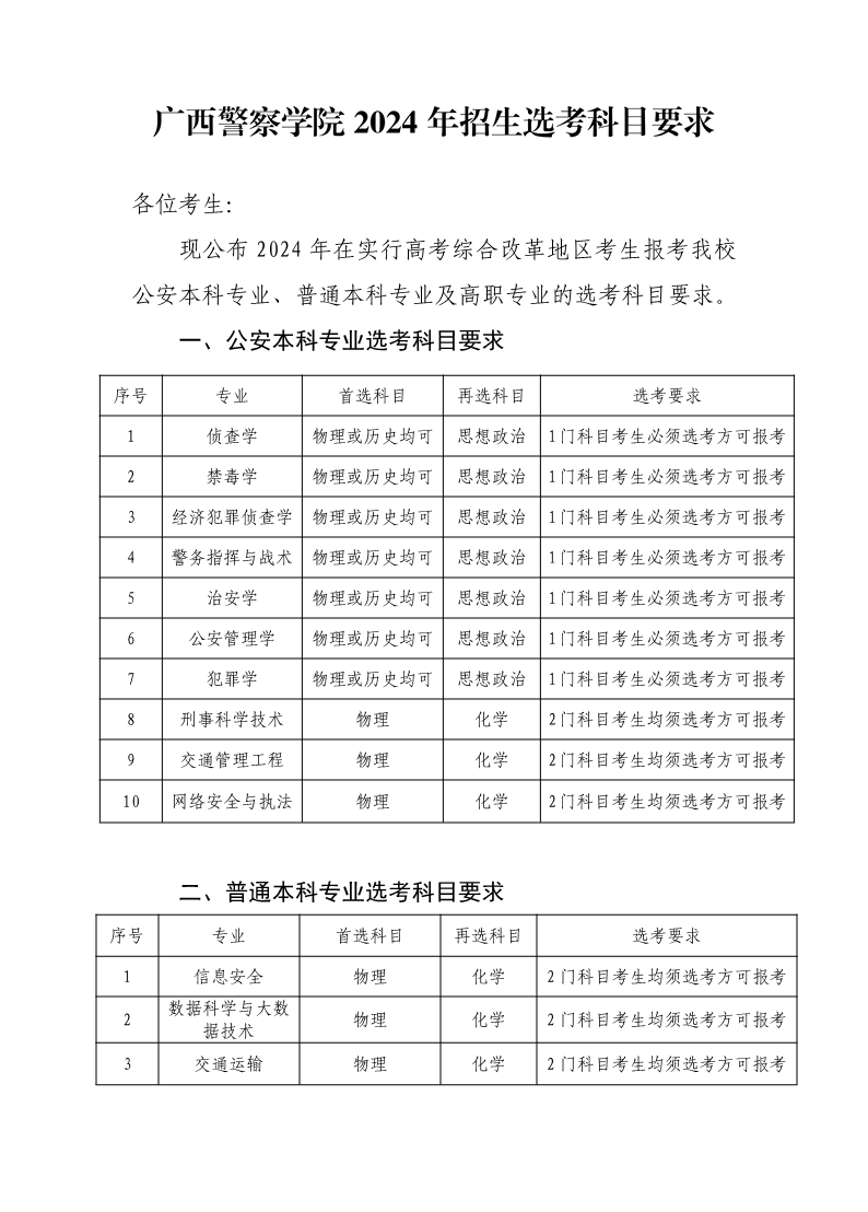 bat365中文官方网站2024年招生选考科目要求