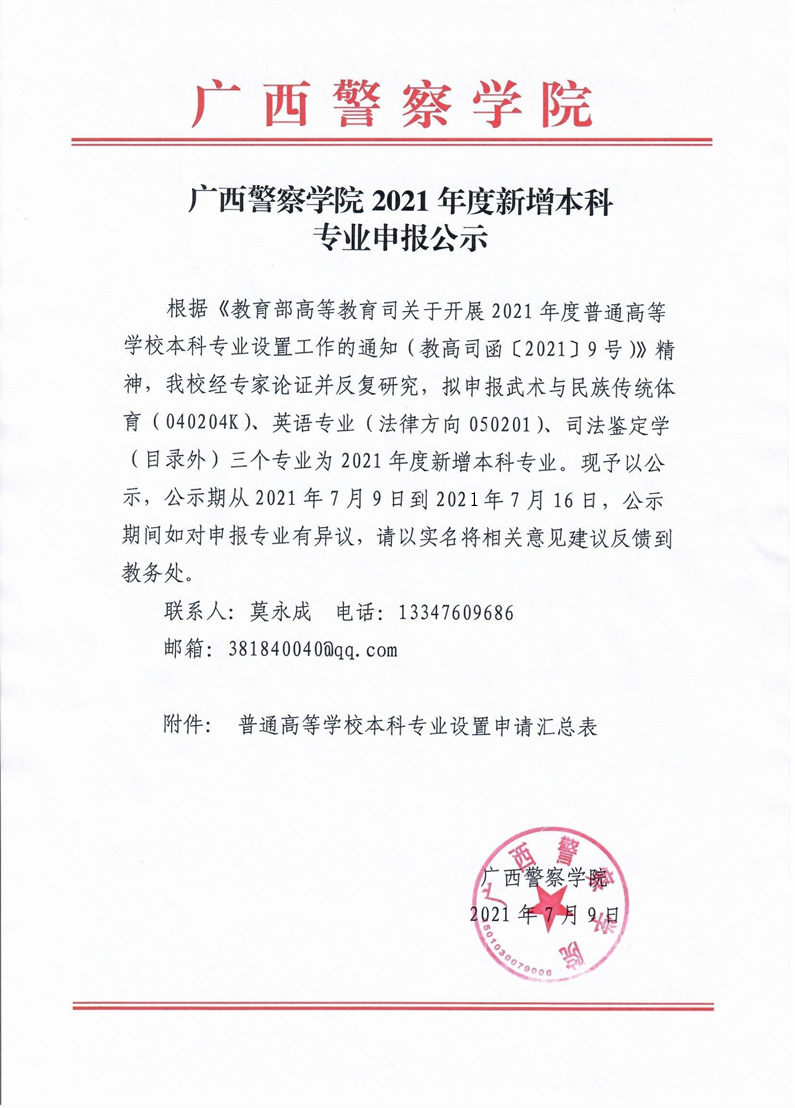 bat365中文官方网站2021年度新增本科专业申报公示